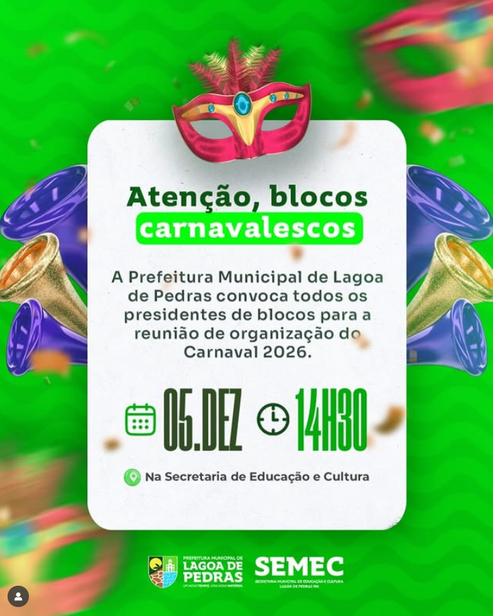 A Prefeitura Municipal de Lagoa de Pedras e o Conselho Municipal dos Direitos da Criança e do Adolescente (CMDCA) convidam toda a …