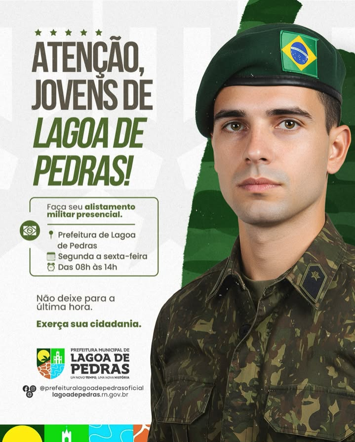 Atenção, jovens da classe de 2008!Chegou a hora de se alistar no Serviço Militar Obrigatório. Prazo final: até 30 de junho de …