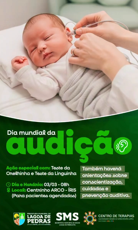 Dia 03/03 – Dia Mundial da Audição A Secretaria Municipal de Saúde de Lagoa de Pedras convida você para uma ação especial …