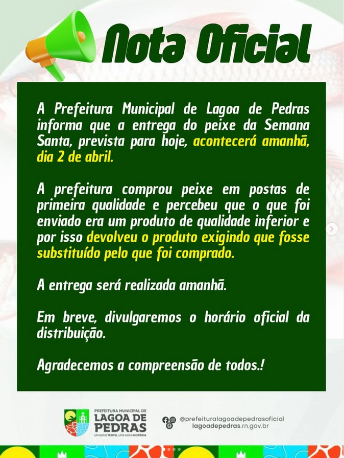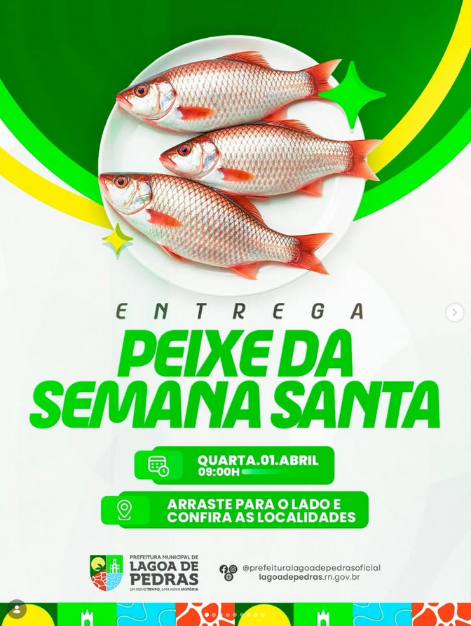 Atenção, população de Lagoa de Pedras! Nesta quarta-feira às 9h será realizada a entrega do peixe. Zona urbana (Centro de Lagoa de …
