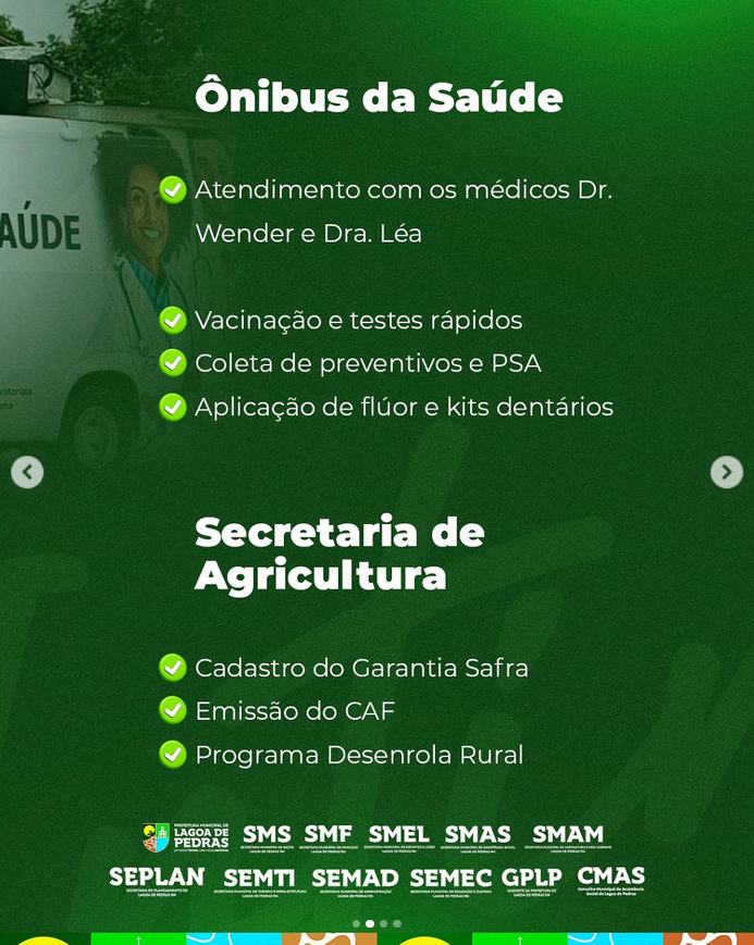 A Prefeitura de Lagoa de Pedras segue levando ação, cuidado e cidadania para mais perto de você!