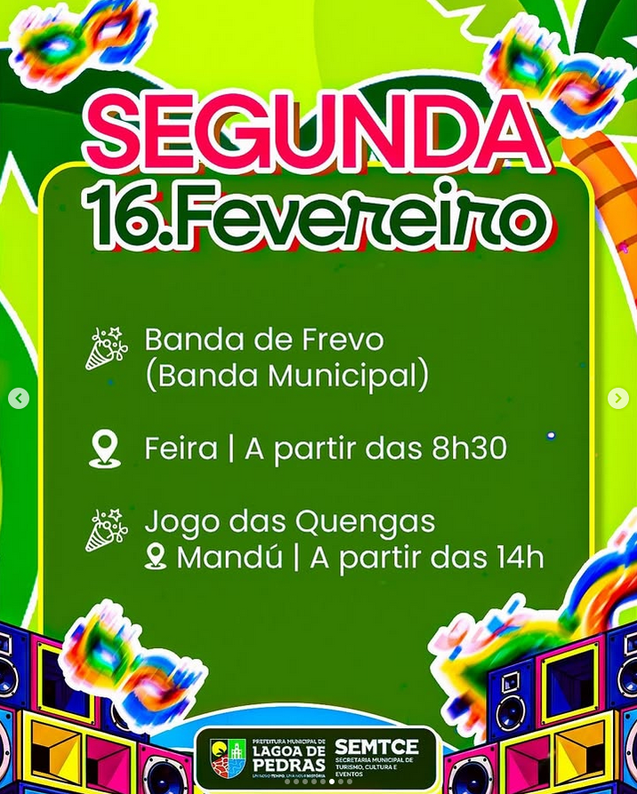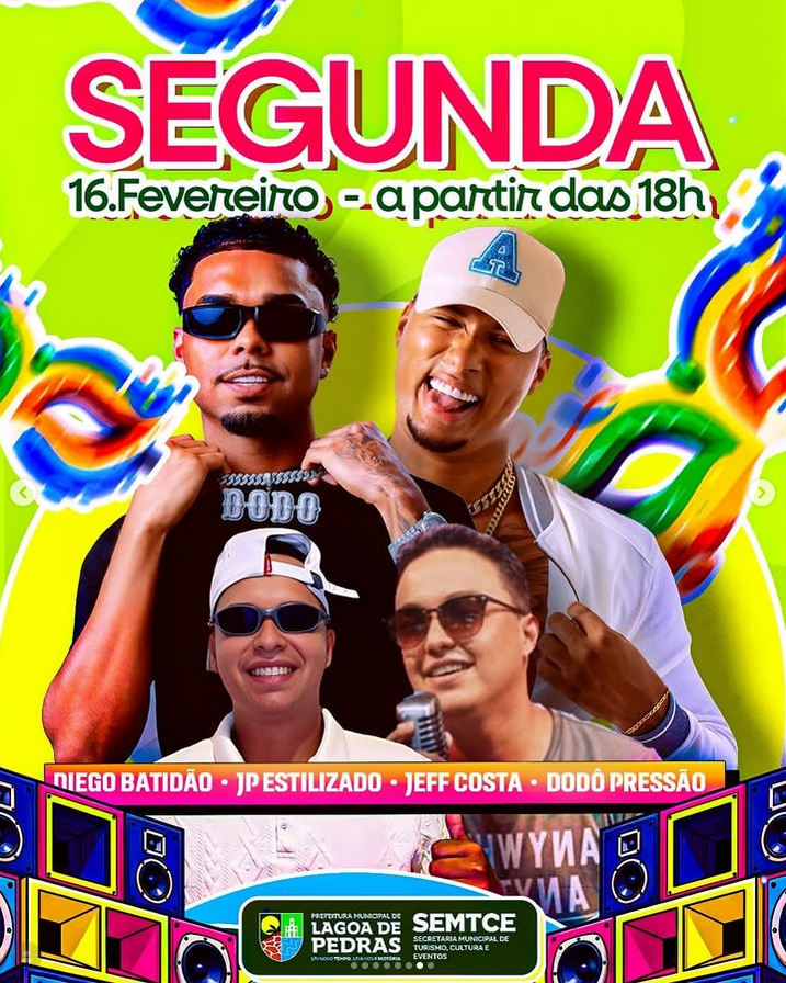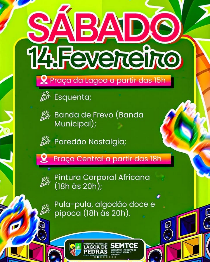 Confira a programação do LP Folia 2026. Serão 4 dias de festa, com atrações que vão tomar conta da cidade e fazer todo mundo cair na folia.Vem aí o LP Folia, uma festa feita pelo nosso povo e para o nosso povo.