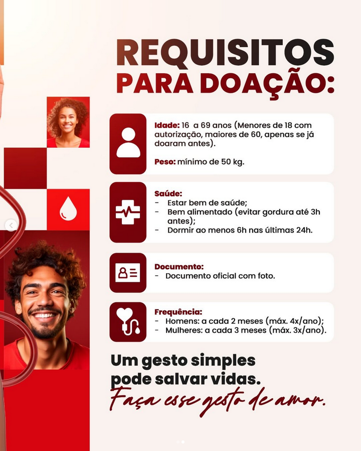 Doe sangue. Salve vidas. Um gesto simples pode fazer toda a diferença.Participe e ajude a levar esperança a quem precisa.