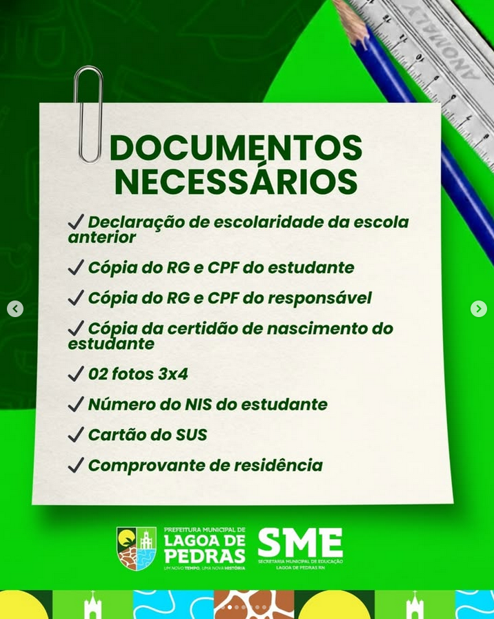 A Rede Municipal de Ensino inicia o período de matrículas para o ano letivo de 2026 a partir do dia 19 de janeiro.
