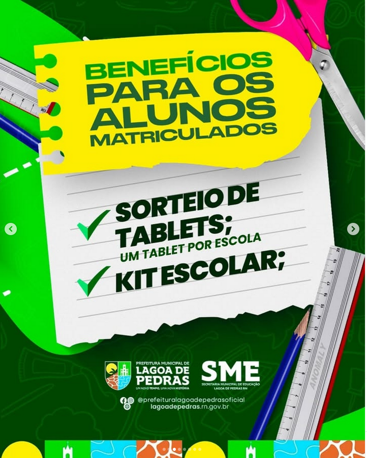 Sorteio de 01 tablet por escola, entre os alunos matriculados