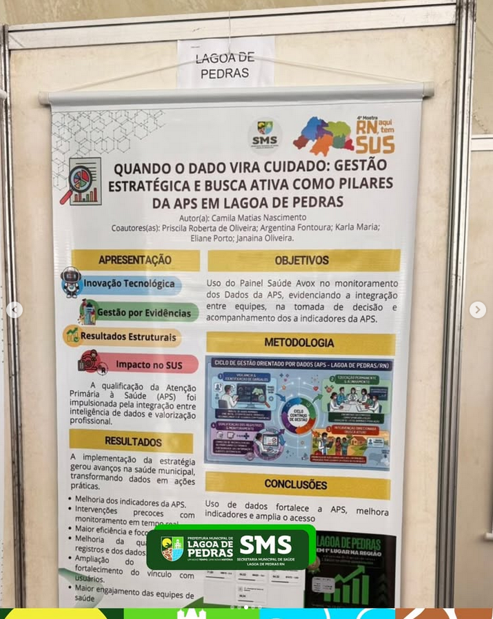 O município de Lagoa de Pedras ganha destaque ao participar da mostra com a apresentação de quatro trabalhos, reafirmando o compromisso com a inovação e a qualidade na Atenção Primária à Saúde.